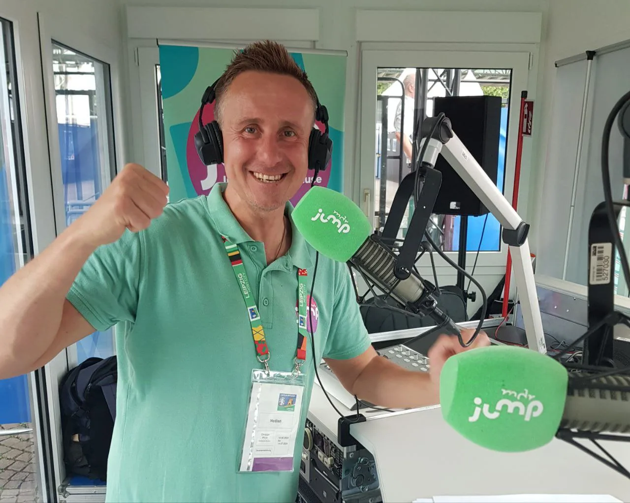 Bei der Europameisterschaft 2024 war ich für in der Leipziger Fanzone als MDR Jump Fußballexperte im Einsatz. Darüber hinaus war ich verantwortlich für das einzigartige und mobile MDR JUMP Sendestudio, wo ich Interviews mit Fans aus ganz Europa geführt habe.